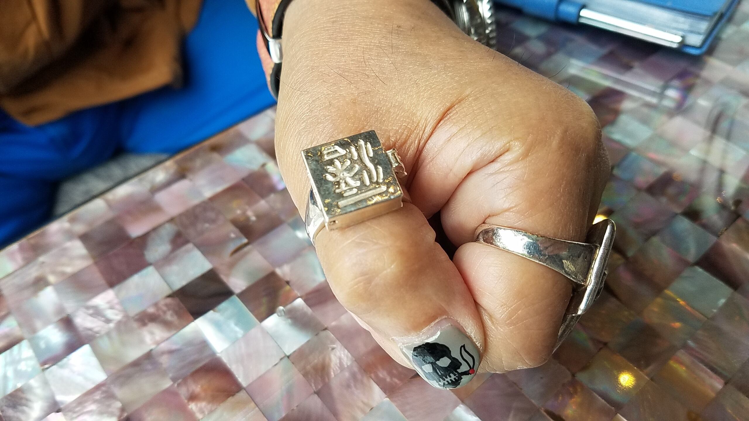 週刊プレボーイを100万部に育て上げた伝説の元編集長、エッセイスト&バーマンである島地勝彦氏が使用している落款をそのままデザインしたリング。