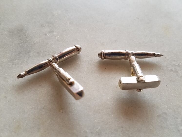上品に艶めくパイプと万年筆をモチーフにしたシルバー925製のカフスです。
