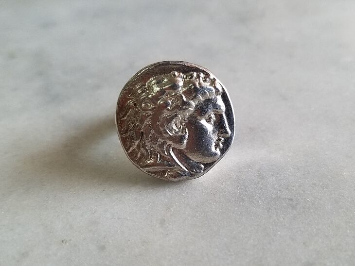 勇気と統率力のあるリーダーの象徴、アレクサンドロス大王の銀貨をレプリカにしたリング。
